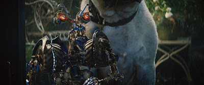 因此雷射鷹這個角色基本上是根據現場設定來做互動的, 其他角色我們也是如此處理的. 當甩輪(Wheels)跳到毀滅者(Bonecrusher)---狗狗上面的那一幕, 我們用小箝子拉他的耳朵, 麥導很喜歡在真實場景裡面作這種小技巧, 設定場景的感覺.